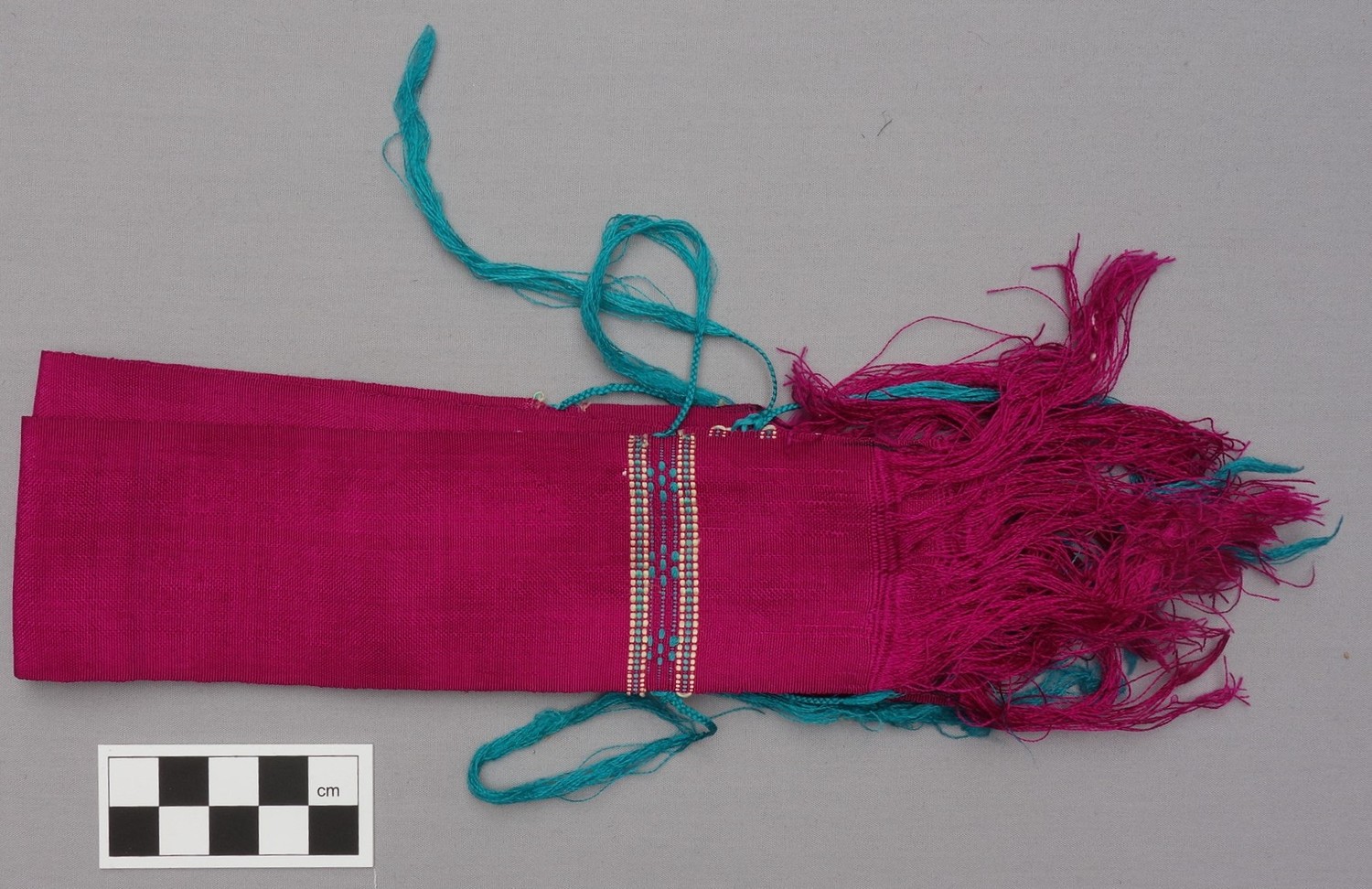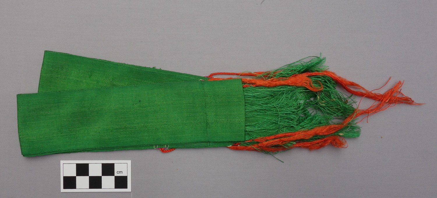 Leggings were used among some women to cover their leg bandages. They also made sure that only the tip of the lotus shoes could be seen. These leggings consisted of an open ended sheath made from silk lined with cotton. They were normally up to 10 cm wide and as long as 30 cm in length. They were usually made up of bands of coloured silk decorated with embroidery or woven braids and with a cotton lining.