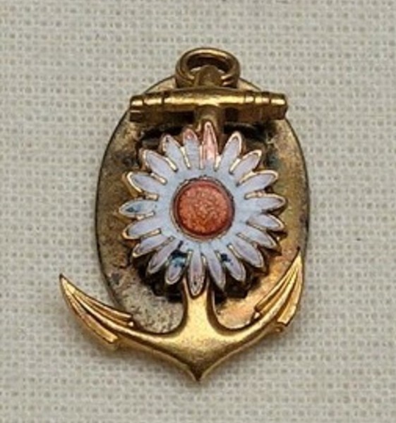 The Dutch merchant navy acted as godfather for the new born princess and from that moment on, sailing merchant navy employees wore cufflinks and badges with a daisy combined with an anchor (compare TRC 2020.3473).