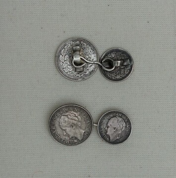 In 1941 the Germans seized all the silver and copper coins. This was on the one hand because the old coins bore the image of Queen Wilhelmina, on the other hand the metal was used for the German arms industry. The people had to hand in their old coins in exchange for new zinc coins or paper money. However, many Dutch people kept their old coins and turned them into jewellery, which was worn as a symbol of resistance and as a reminder of the royal family.