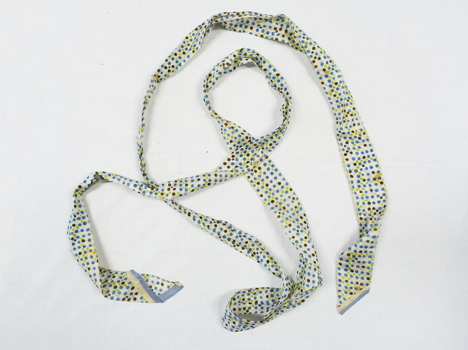 A sleeveless, ankle-length, unfitted 1920's dress, made out of a silk fabric with an Oriental pattern (floral; Chinese prosperity symbols) in green, blue, orange and red on an off-white background. The Netherlands, 1920s. TRC 2016.2301.Orientalism
