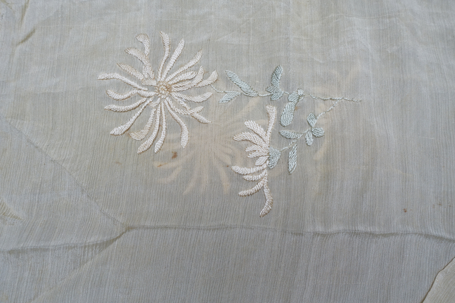 Some Chinese robes and Japanese kimonos were imported and remade into wearable women’s coats. Early dresses from the period often feature geometric motifs and golden appliques on a dark background emulating Oriental aesthetics, while Asian influences could be seen in silken fabrics featuring Chinese-like flowers or even characters.