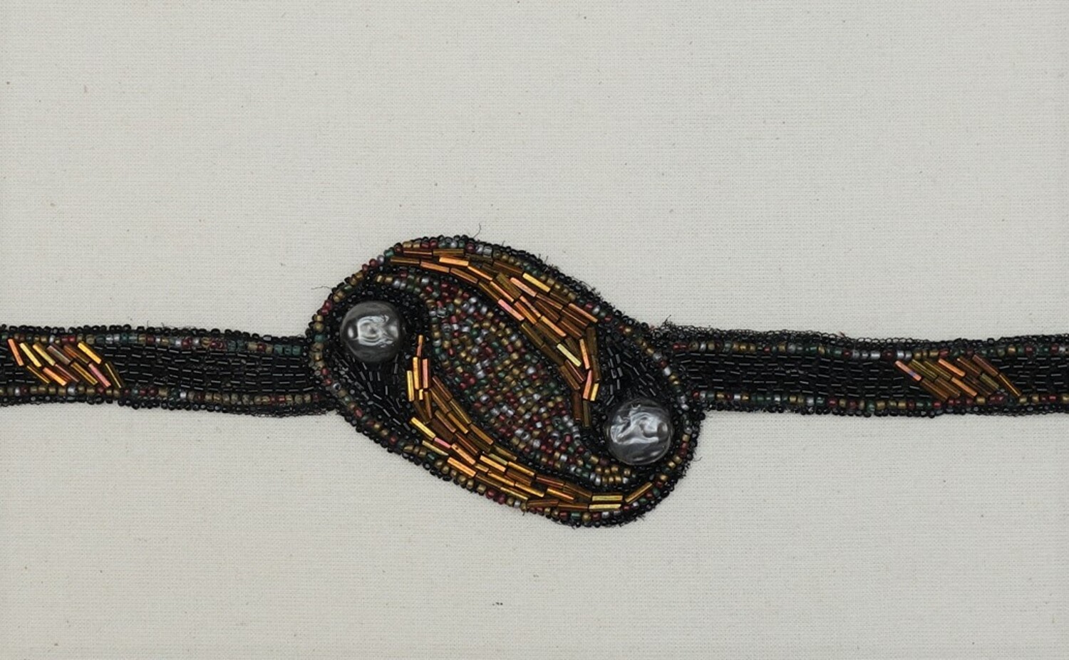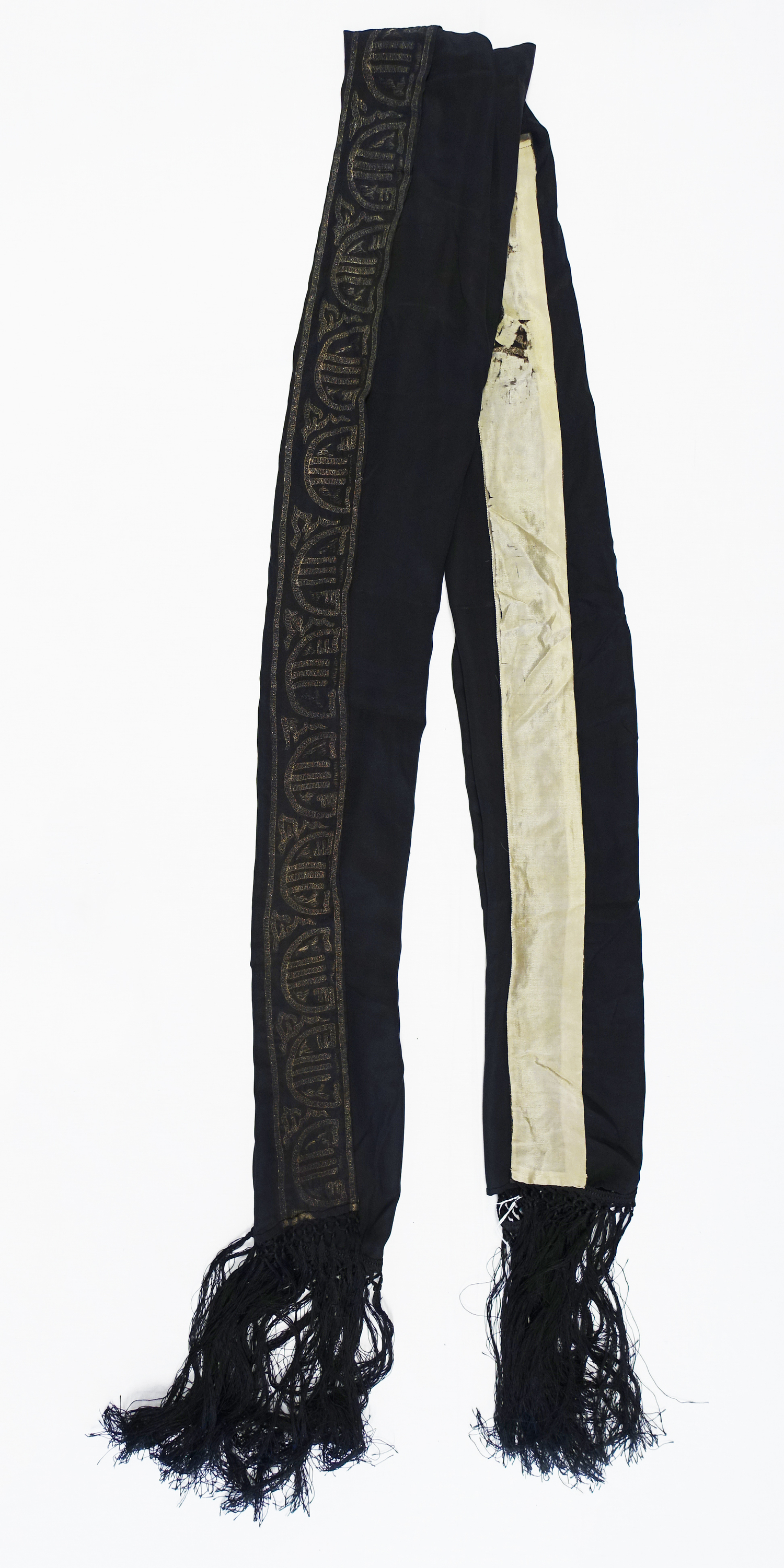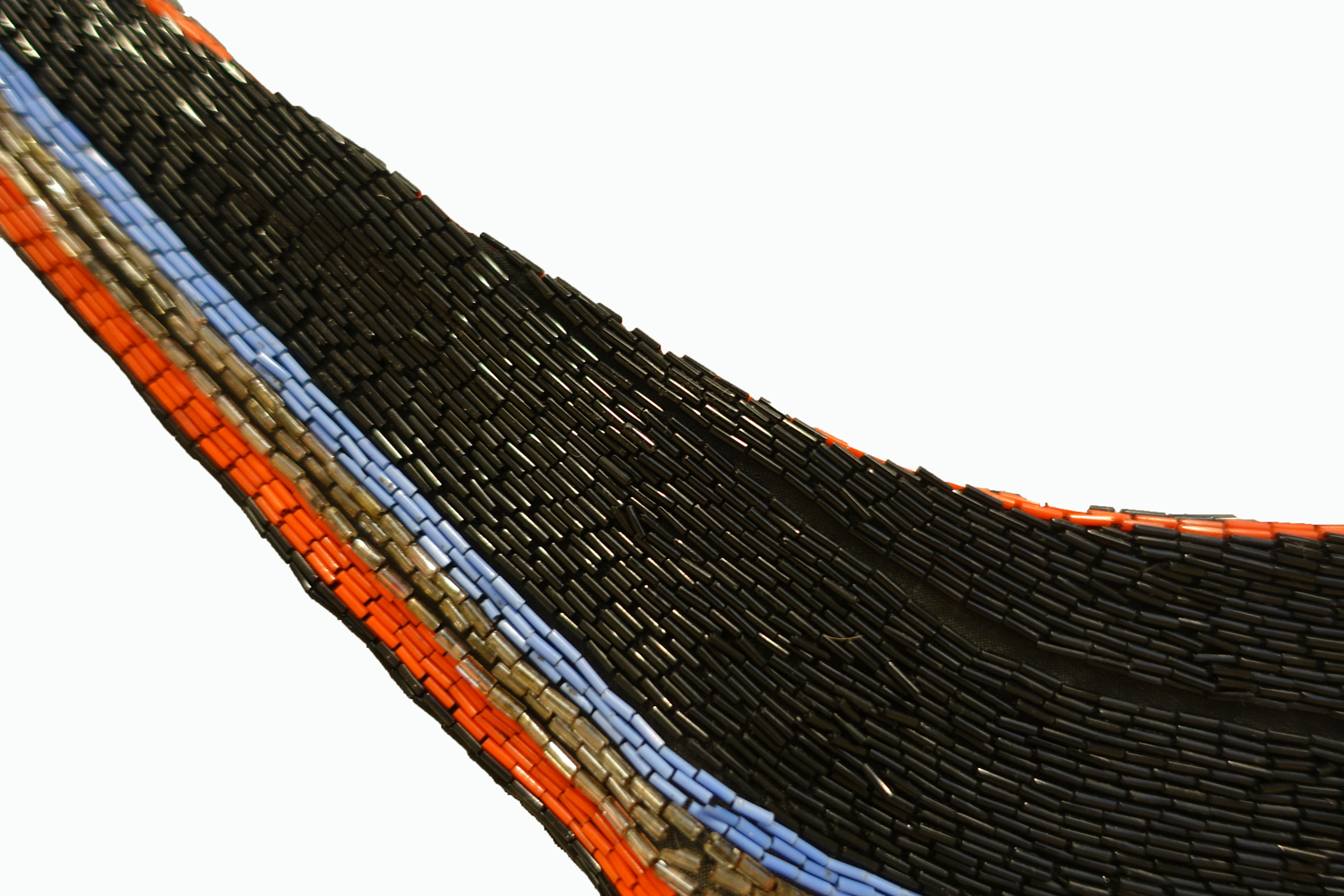 The exhibition inludes three stylised capes; an interesting thought is whether the black and orange cape’s decorative bow (TRC 2022.31782022.3178) would in fact have been worn on the back rather than the chest of the wearer since an open back would have been the fashion of the time.