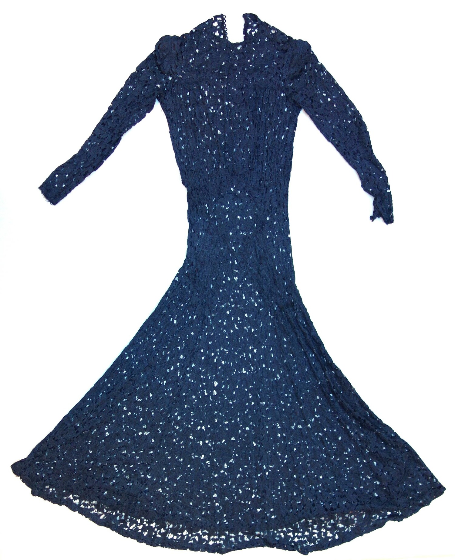 Evening gowns were often sleeveless (in contrast to daily wear) and could feature a deeper neckline, but more often than not actually revealed a daringly low-cut back. Hemlines either went below the knees (rarely above, except for dancers and performers) or actually sometimes draped dramatically low to the feet for impressive effect.