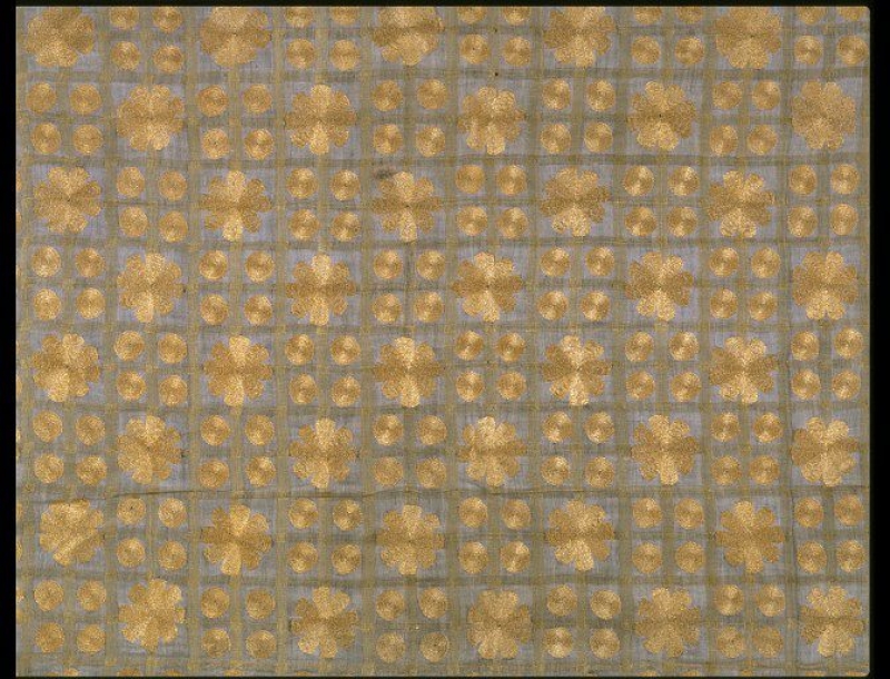The India Museum in London used to house part of a cotton scarf that was produced in Bengal and acquired in Nepal in c. 1855. It is decorated with a woven checked pattern with tussah silk threads. It is also embroidered in tussah silk with circular and floral motifs. The scarf has been in the Victoria and Albert Museum, London, since 1879. The piece measures 105 x 84 cm.