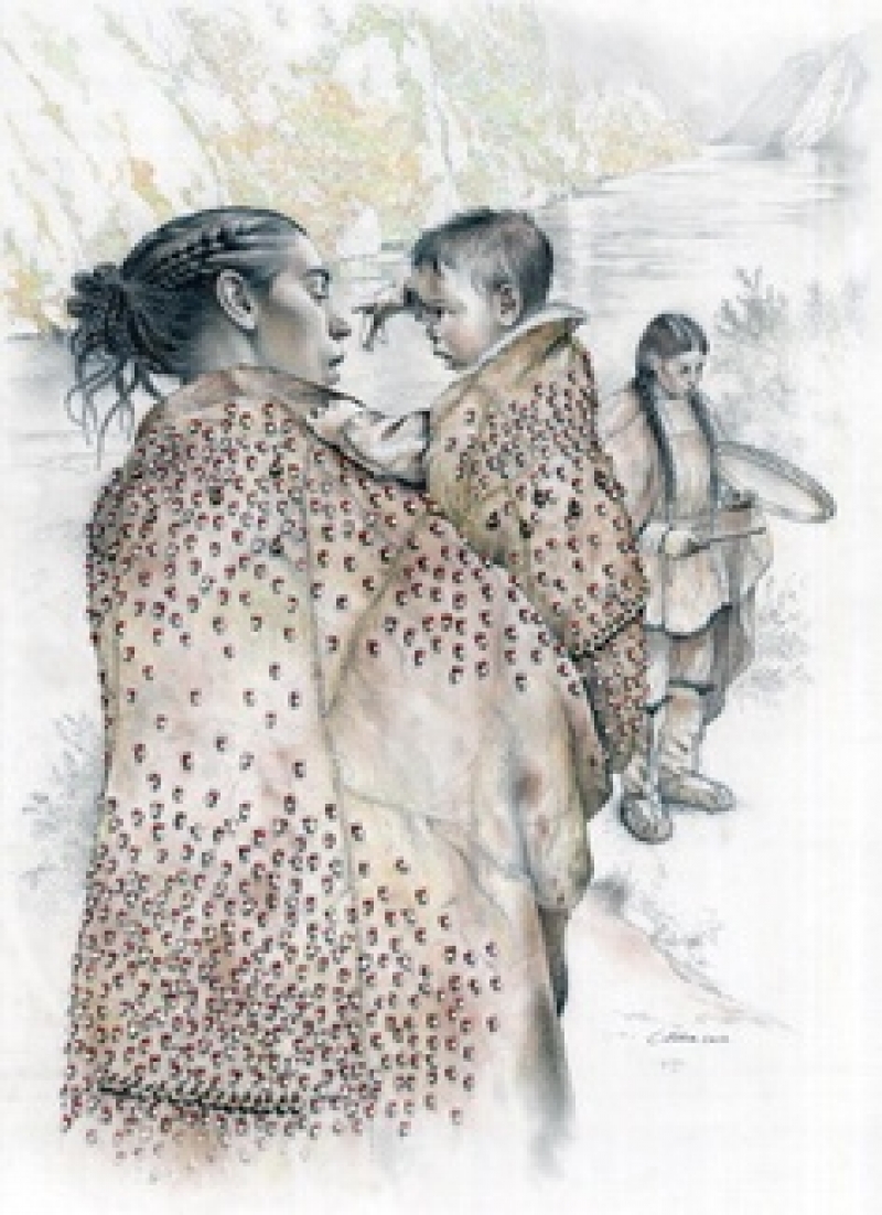 Sometimes the proposed garments are incorrectly described as being decorated with appliqué and embroidery and as such would have been some of the oldest recorded examples of these techniques. The teeth and beads are non-cloth items (so not resulting in appliqué). They were sewn onto a ground material of some kind without decorative stitching (so not producing embroidery) and as such they come under the general heading of applied decoration.