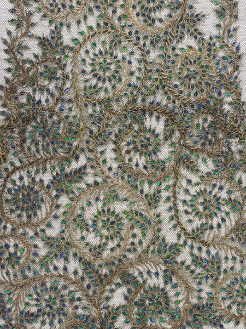 Cloth with beetlewing and gold thread embroidery, Chennai, India, late 19th century. Cloth with beetlewing and gold thread embroidery, Chennai, India, late 19th century. Copyright Victoria and Albert Museum, London, acc. no. IS.1917 to E-1883.