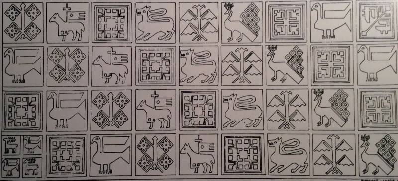 The embroidery was worked in silk with long-armed cross stitch and consists of a chequered design, on both sides of the cushion, of square compartments filled with different motifs. Such a decoration is also shown on the tombs of Henry III (r. 1216-1272) and Queen Eleanor in Westminster Abbey.