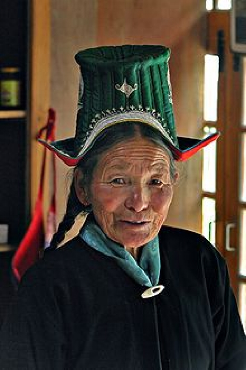 This form of headgear is tall with a flat crown and a semi-circular brim. The hat is made from layers of padded and quilted cloth and is often (but not always) embroidered with individual, geometric motifs on the sides, and a decorative band around the front. Traditionally this decoration was carried out by hand, but for many years machine forms have been used. Often the embroidery is carried out using a metal thread, especially silver forms.