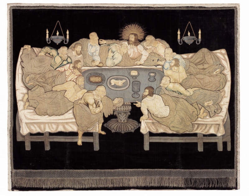 Altar dossal, early 17th century, England, presumably embroidered by Edmund Harrison. Altar dossal, early 17th century, England, presumably embroidered by Edmund Harrison. Copyright Victoria and Albert Museum, London, acc. no. T.206-2009.