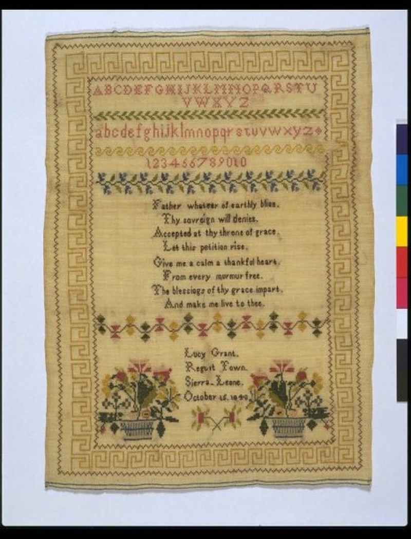 - STRICKRODT, Silke (2010), 'African girls’ samplers from mission schools in Sierra Leone (1820s to 1840s),' History in Africa, vol. 37, pp. 189-245.