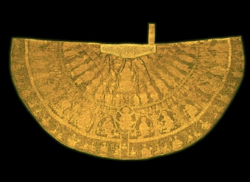 The next written reference to the mantle dates to the late thirteenth century and can be found in a description of the coronation ceremony of Andrew III in 1290: “The king wore a robe already worn by Saint Stephen.” It is possible that the cope was altered into a mantle for Andrew’s coronation, but this is not certain. It is possible that the large collar of the mantle, which is decorated with pearls, was added at this point.
