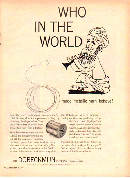 Dobeckmun advertisement for their metallic yarn. 1951.