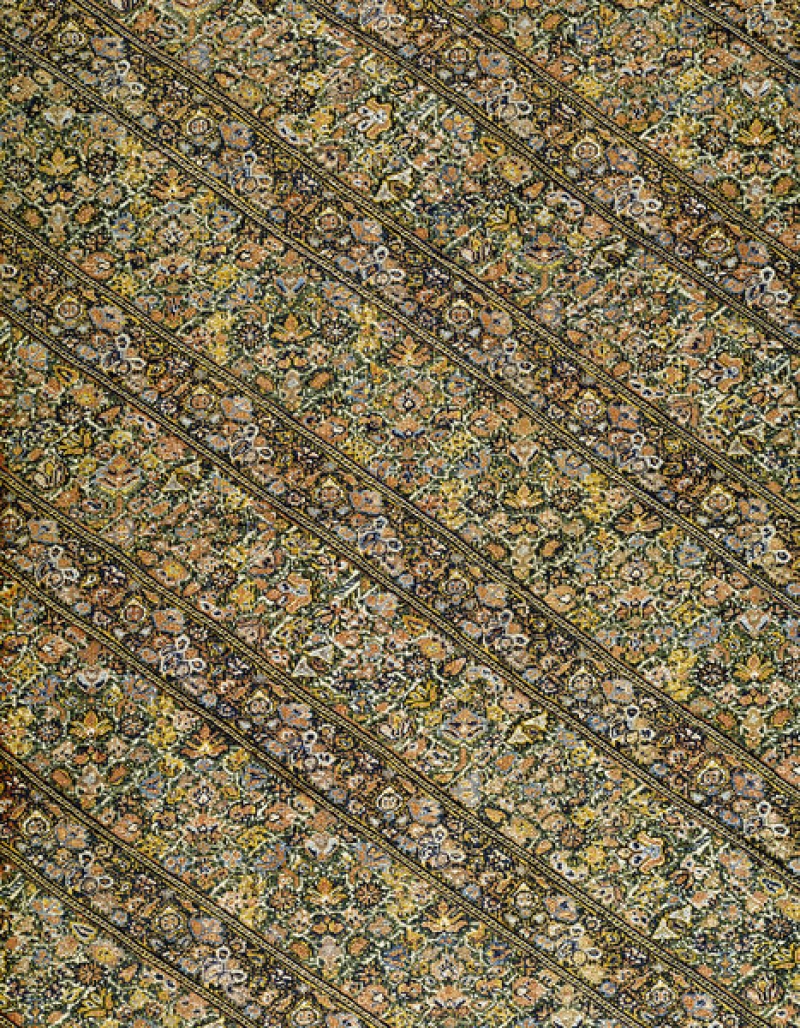The panels were either wool on wool or silk on wool. Sometimes the ground material is cotton. At times metal thread was used. In later years the diagonal patterns were reproduced in printed fabrics that were worn in particular by the Zoroastrian community Iran.