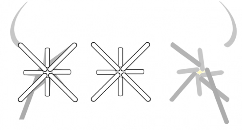 The long and short square eyelet is a variation of an eyelet in which eight, individual stitches are set at 45 degree angles. Unlike the square eyelet, however, the length of the diagonal stitches is deliberately much longer than the vertical and horizontal stitches. GVE