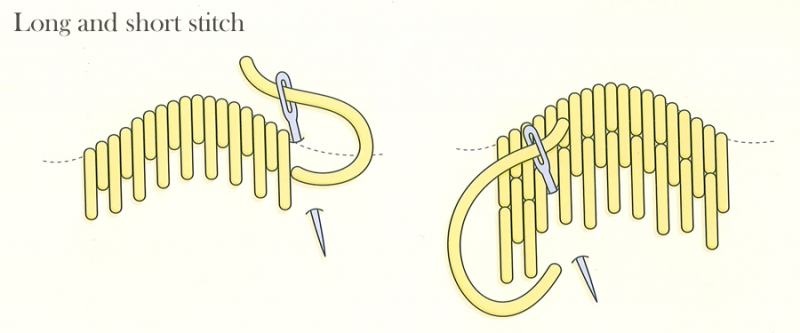 Also sometimes known as: Algerian filling stitch; brick stitch; embroidery stitch; feather stitch; Kensington stitch; plumage stitch; shading stitch.