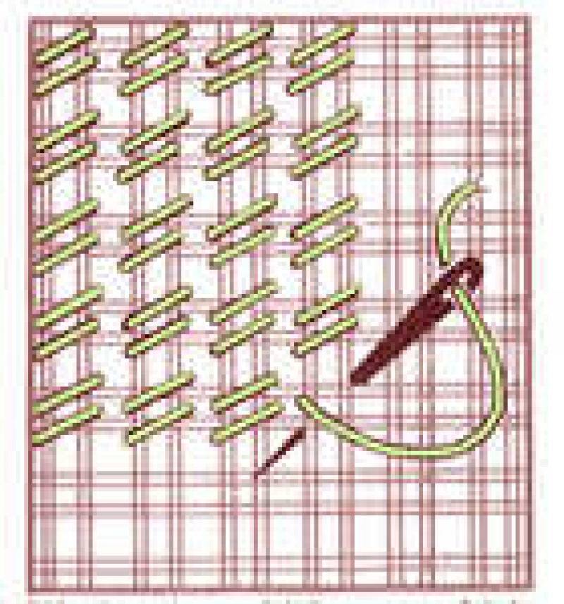 The rep stitch is a counted thread technique for double thread (Penelope) canvas, whereby simple stitches are worked diagonally over the intersection of the canvas threads.