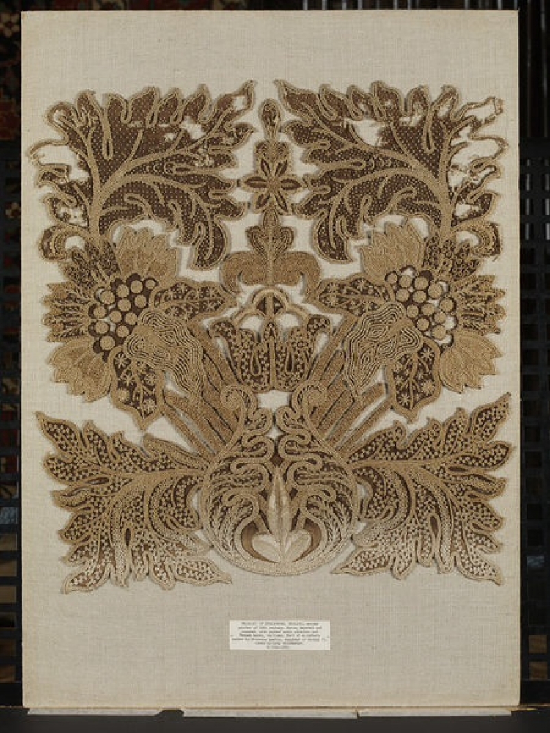 Sometimes silk or satin cloth with a firm backing was used as a ground material. The technique was used mainly for household furnishings, such as bed hangings, window curtains, chair covers and so forth, but also for garments. Stringwork went out of fashion in about 1800, when a comparable technique, called tatting, took over.