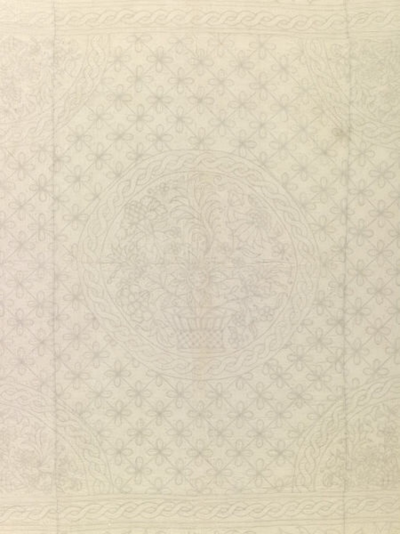 Linen cord quilts were fashionable in English homes at the end of the seventeenth century, when the bedroom was a room of public display and entertainment. An elaborate example of an early eighteenth century English bed quilt made in this fashion can be found in the Victoria and Albert Museum in London (T.209-1983).