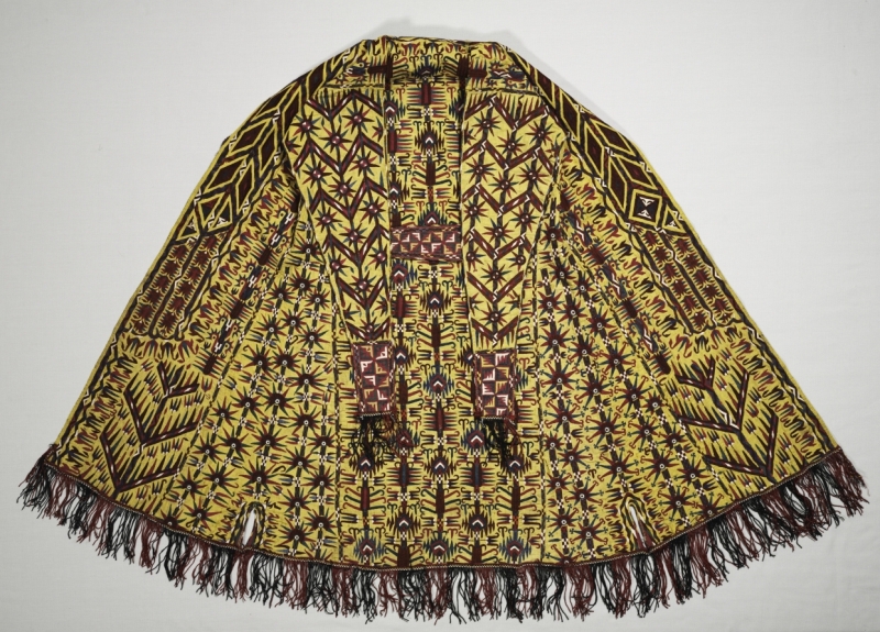According to curatorial information, the yellow colour of the coat indicates it was worn by a middle aged woman. It is also indicated that the high quality of the coat would indicate it was professionally made.