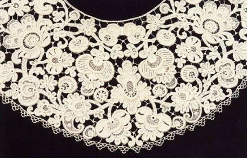A slightly raised and fine needlepoint lace developed in the mid-nineteenth century on the basis of Venetian and Spanish needlepoint forms. It was still being produced in the early twentieth century. Inishmacsaint lace was worked with flax threads.
