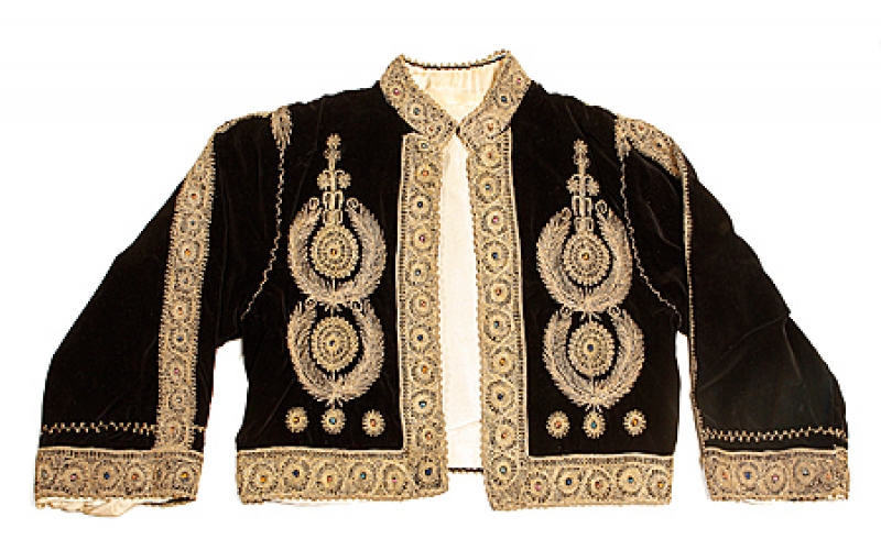 The role of the French embroidery company of DMC was highlighted as it has influenced Arab embroidery, especially that from the Mediterranean region, for well over one hundred years. The oldest embroideries on display were two fragments from children’s tunics, which date from about the fifth century A.D. These rare pieces came from Coptic Egypt. More recent items were an early twentieth century dress and velvet jacket from Bethlehem; a late twentieth century man’s cloak from the High Atlas mountains of Morocco, Bedouin dresses from the Northern Sinai; wedding dresses from Morocco, the Siwa Oasis (Egypt) and Saudi Arabia, as well as various types of indigo dresses from Yemen.