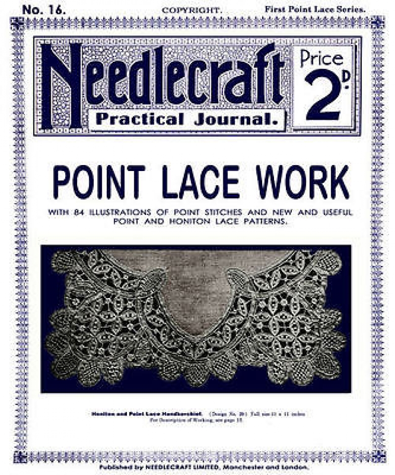 The Needlecraft Practical Journal was first published in 1900, initially with four issues per year in January, April, July and October. Later, seven new titles were added each year. Free transfers were added in 1911. Each issue covered a different special subject. Eventually well over one hundred titles were produced, on subjects as varied as bead bags (no. 92), cross stitch work (no. 30), darned netting (filet lace; no. 66), needlework novelties (no. 90) and white work (no. 101).