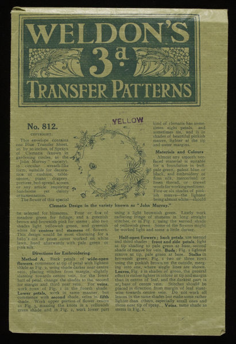 Packaging of an embroidery transfer, early 20th century, Weldon's Ltd, England. Packaging of an embroidery transfer, early 20th century, Weldon's Ltd, England. Copyright Victoria and Albert Museum, London, acc. no. E.227:1, 2-2015