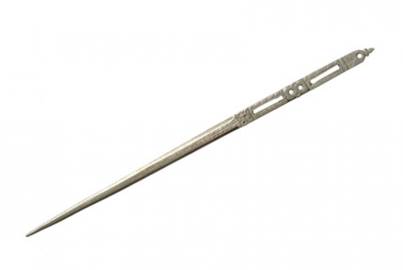 Bodkins are used to thread cords, elastics, ribbons or tapes through pre-made holes and tubes in a cloth or a garment. They may also be used as hairpins. Bodkins can be made out of a wide range of materials, such as bone, metal, plastic, etc.