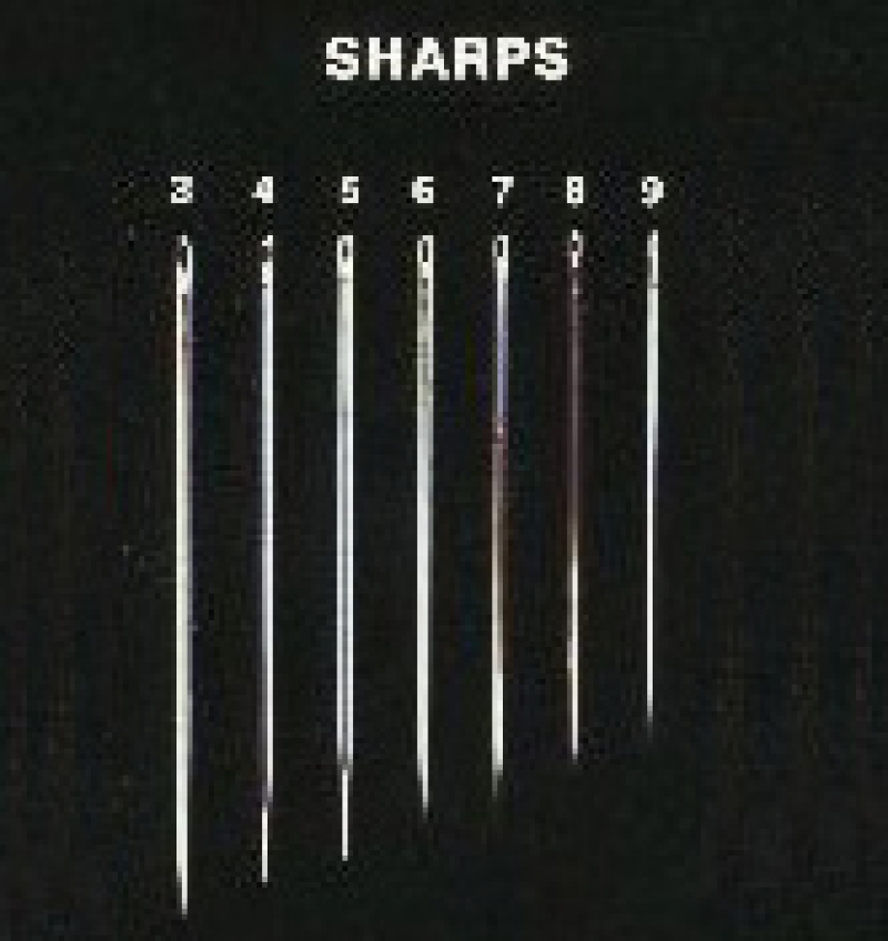 The sharp needle (or 'sharp') is a type of needle used for general hand sewing, including decorative needlework. The sharp needle has a sharp point, rounded eye and is of medium length (generally between 4 and 5 cm). It is sometimes also called an appliqué needle.