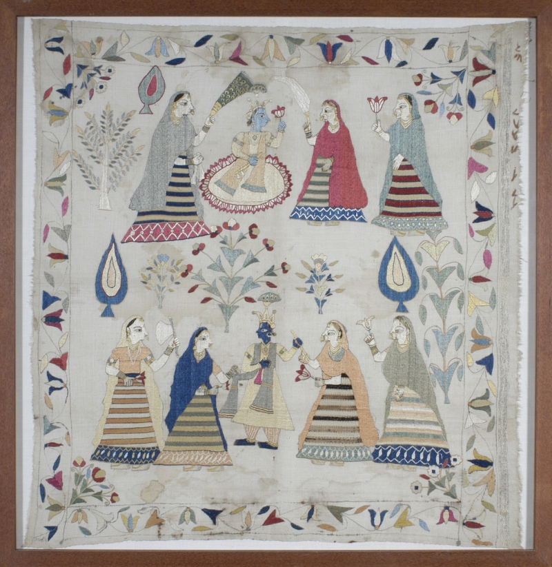 Chamba rumal with a representation of Krishna and the gopis. India, c. AD 1800.