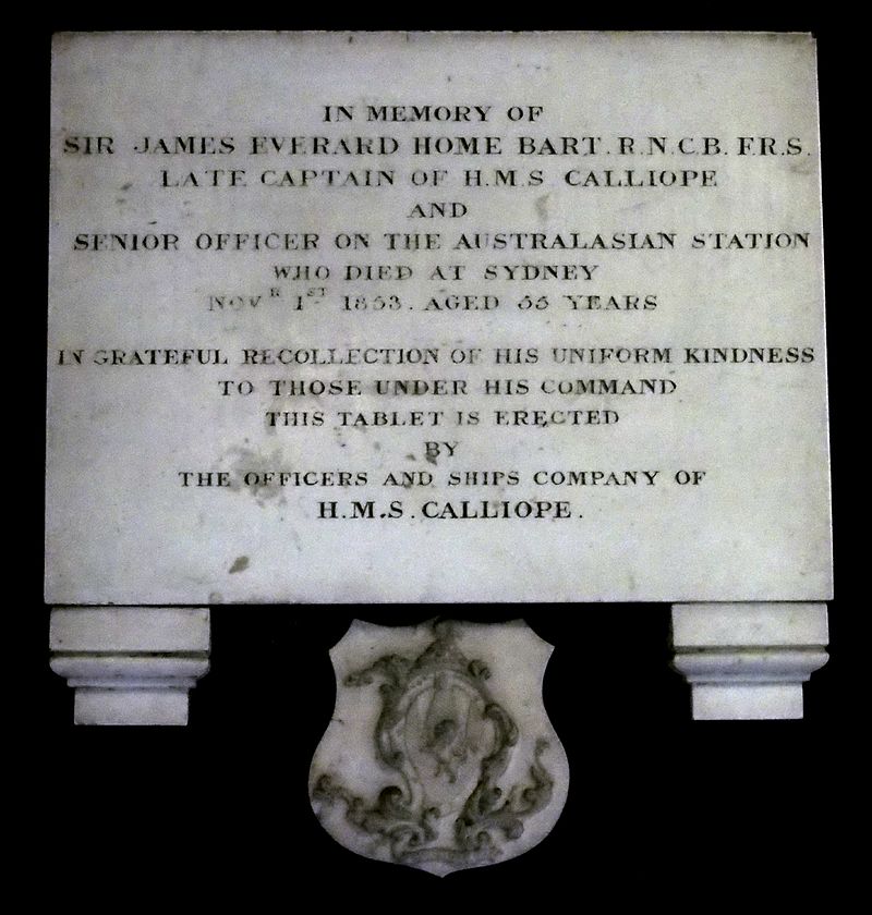 Memorial to Sir James Everard Home, in St James' Church, Sydney.