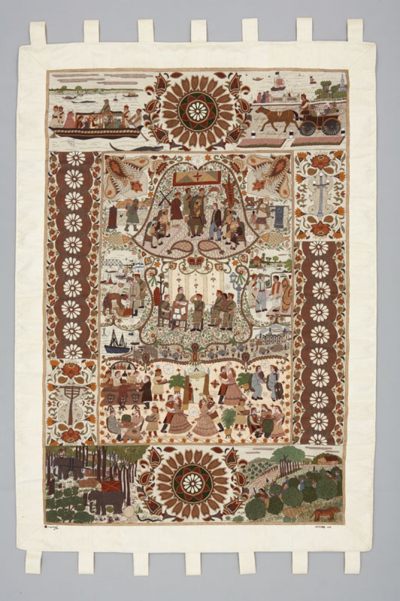 See DEACON, Deborah A. and Paula E. CALVIN (2014). War Imagery in Women's Textiles. An international study of weaving, knitting, sewing, quilting, rug making and other fabric arts, Jefferson: McFarland, p. 138.