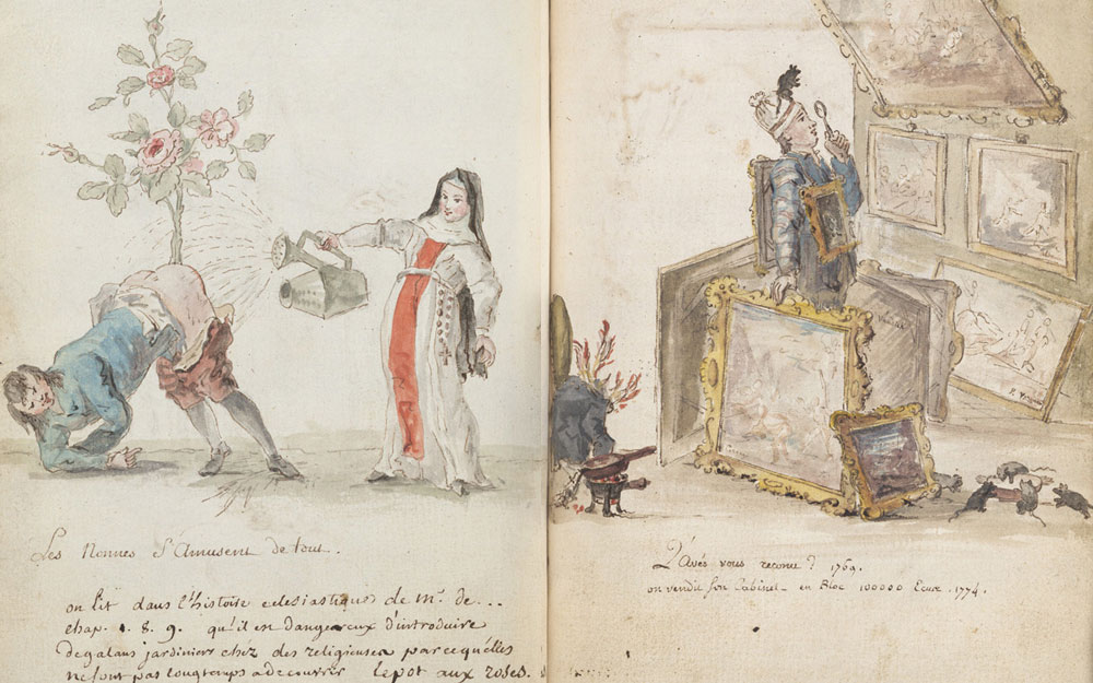 Illustration: Charles-Germain de Saint-Aubin (?), Les nonnes s'amusent de tout, from: Livre de bonnes caricatures tant de bonnes que mauvaises, ca. 1740-1775, Waddesdon Manor, acc. no. 675.292.