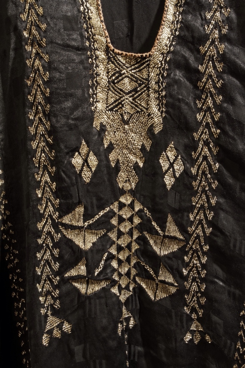 Telli is a form of metal thread embroidery from Egypt, Lebanon and Syria. It uses thin strips of metal thread to make herringbone stitches, satin stitches and detached Roumanian stitches. The metal thread appears on both sides of the ground cloth. This style of work is directly linked with metal thread work from the former Ottoman Empire. This technique was used to decorate a range of garments, such as dresses and shawls.