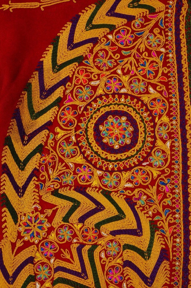 In cord couching, often coloured embroidery threads are used to highlight details. This type of couching is associated, for example, with parts of the Mediterranean and can be found in nineteenth and early twentieth century Greek, Palestinian (notably Bethlehem couching) and Turkish decorative needlework.