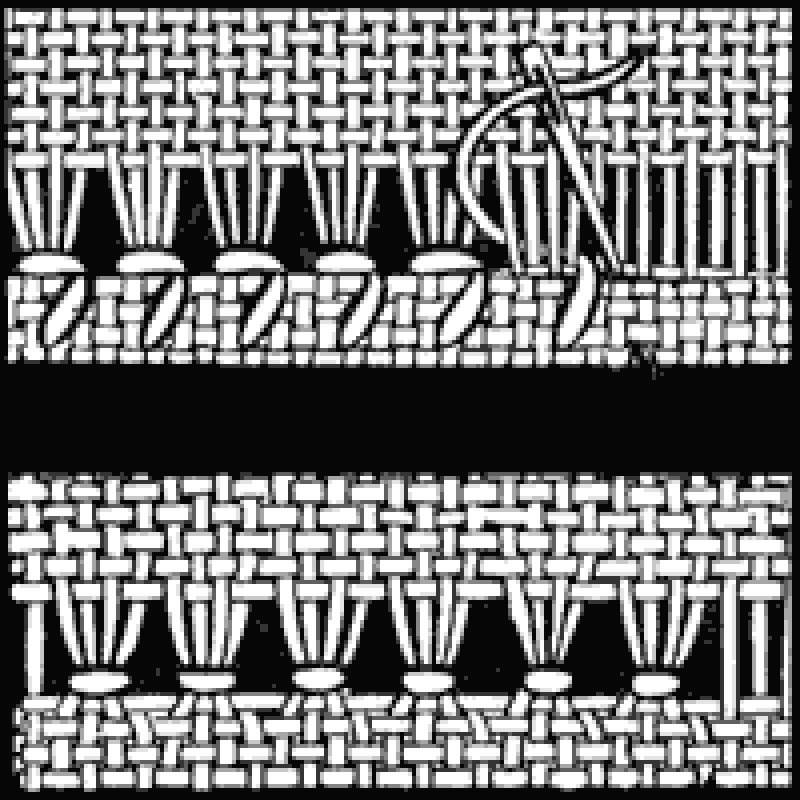 Schematic drawing of an antique hem stitch, reverse and obverse.