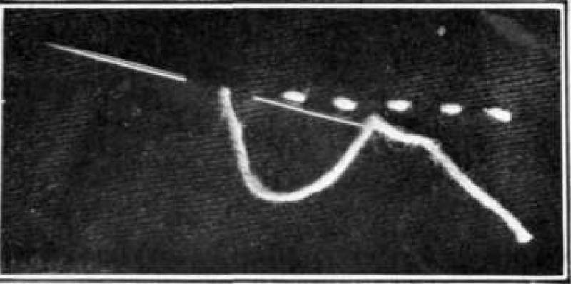 The half back stitch is made in very much the same way as the 'normal' back stitch, but the stitches on the obverse of the fabric are separated, and not touching each other as with the back stitch. Also known as the detached back stitch.