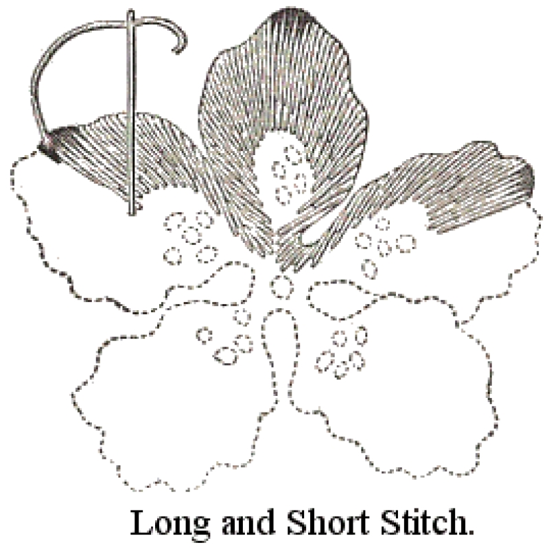 The stitch is sometimes described as a form of long and short stitch. It is also known as solid embroidery.