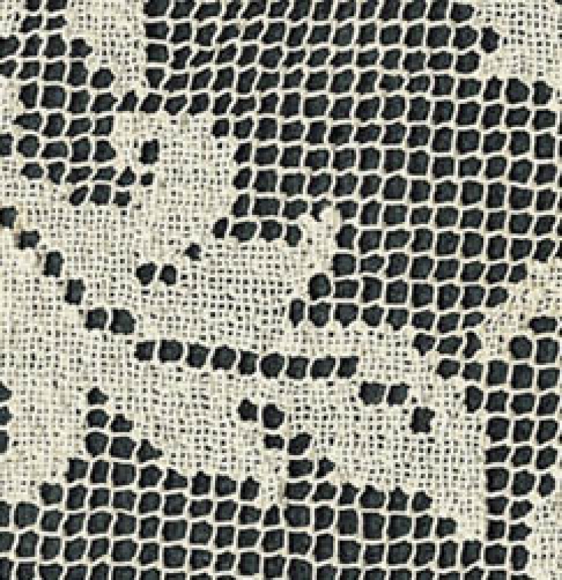 The second type is associated with a square net (filet) ground. In this case, the linen stitch (here also known as point de toile or punto a tela) consists of series of horizontal lines darned into the ground. Then a second series of stitches is worked in the vertical direction, going under and over the horizontal lines. This form is often classed as a form of filet lace, and sometimes as a form of guipure d'art.