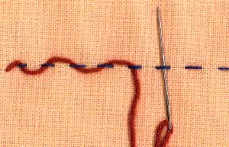 The second thread is laced through the foundation stitch without entering the ground material and without going back on itself (contrary to the comparable interlaced stitches). The foundation stitch is normally applied first, in a long line, followed by the working of the secondary thread.