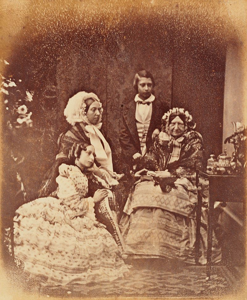 The photograph (Antoine Claudet, 1856) shows Princess Mary to the right, with Queen Victoria siting to her left, and Princess Alice to the far left. The man standing between the two ladies is the Prince of Wales (the future King Edward VII).