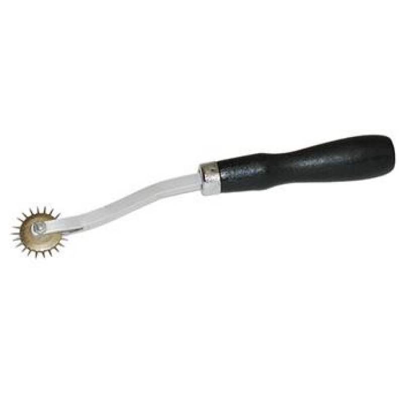 Also known as: dart wheel, pattern wheel, or pounce wheel.