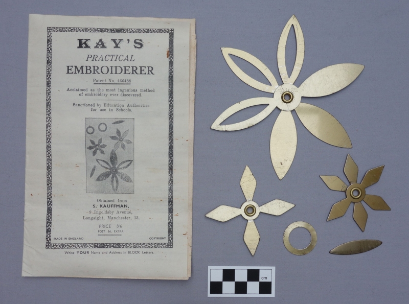 The set of Kay’s Practical Embroiderer was sold at S. Kauffman, 9 Ingoldsby Avenue, Longsight, Manchester, 13 (England), and cost 3/6 (postage was an extra 3d).