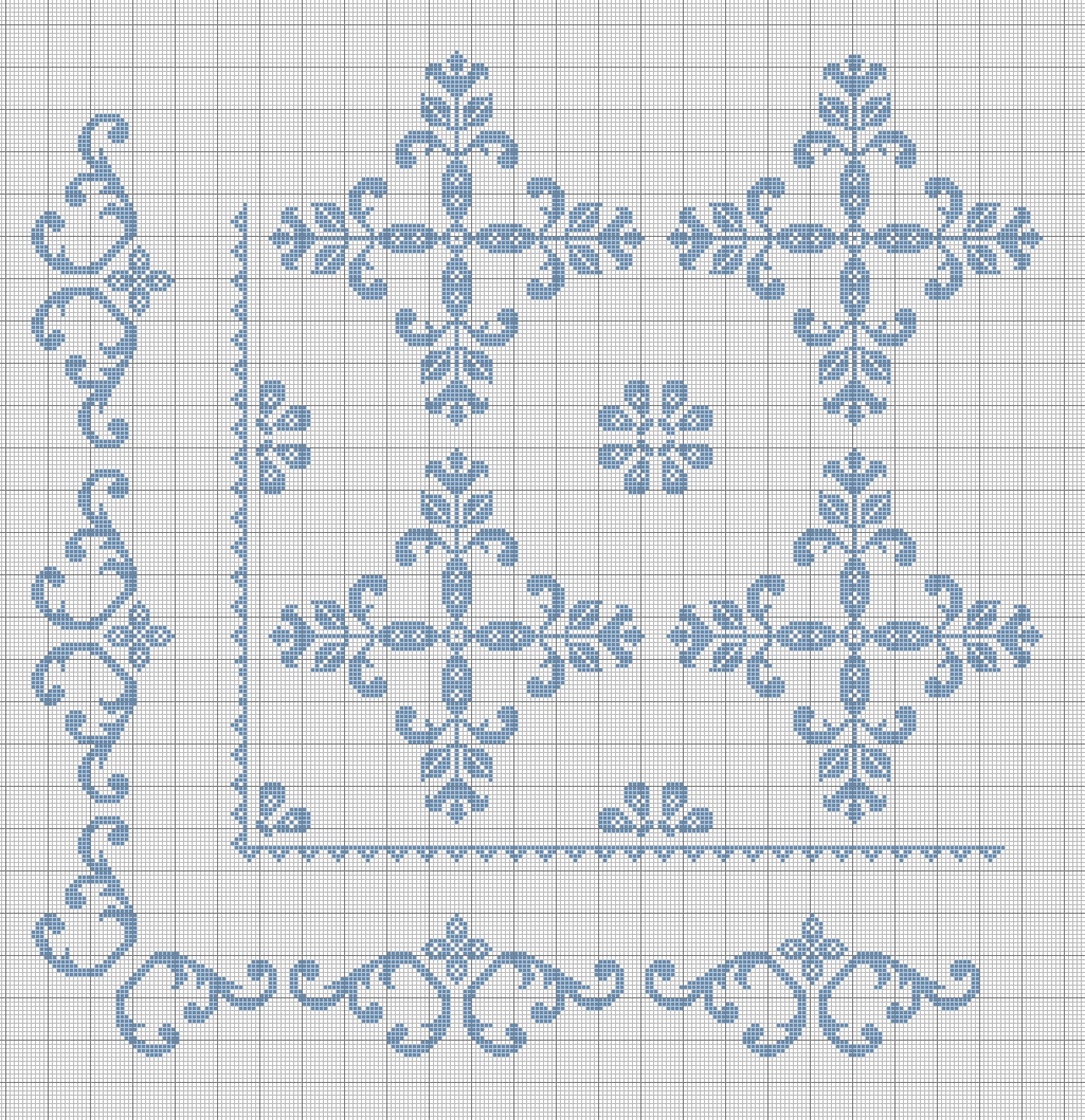 Cross stitch chart for the corner of an embroidered quilt (USA, 1950’s; TRC 2019.2926). For a detailed pdf file, please click on the image.Cross stitch chart for the corner of an embroidered quilt (USA, 1950’s; TRC 2019.2926). For a detailed pdf file, please click on the image.